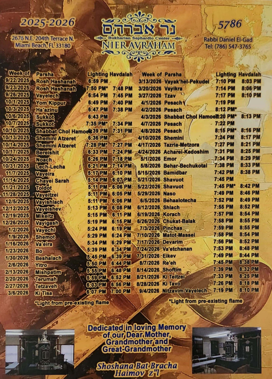 Shabbat Morning: 8:00 AM Halacha class followed by Shacharit
